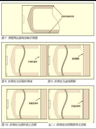 要想避免這種情況帶來的剝離有紙屑,在設計時就應考慮,橫向制袋燙合的模具比實際袋寬稍窄,袋子封燙后,*張袋與第二張袋燙合模具之間應留有空隙,切刀切斷時要求在空隙之間,保證每張袋子的燙縫邊緣外有空隙;以及縱向制袋燙合切余料邊緣時,兩燙縫邊緣外也有空隙(如圖7)。
